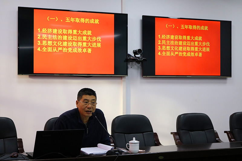 12月6日,朗乡林业地区公安局为认真学习贯彻党的十九大精神,加深全体民警对十九大精神的深刻理解和准确把握,邀请了局党的十九大精神宣讲员、党校副校长、高级讲师曹明国同志为民警进行了十九大精神专题辅导,并观看了《警钟》警示教育片。
