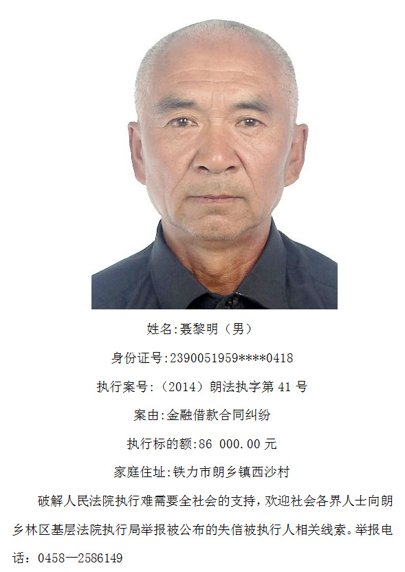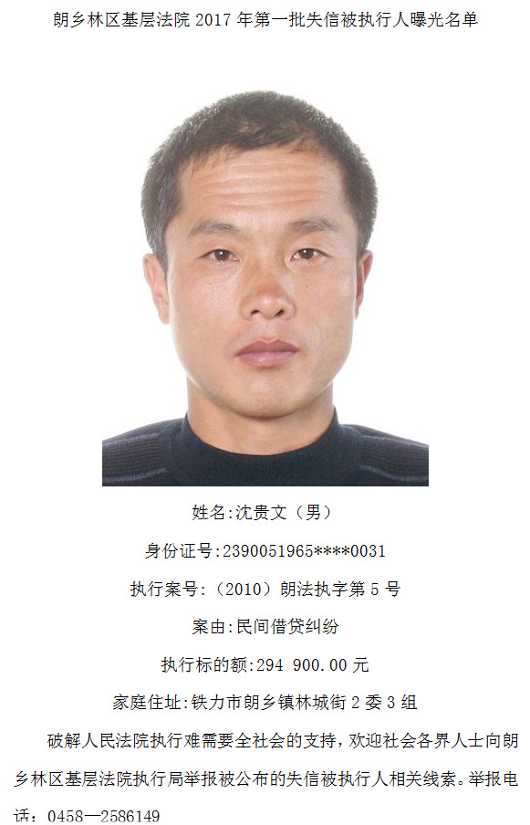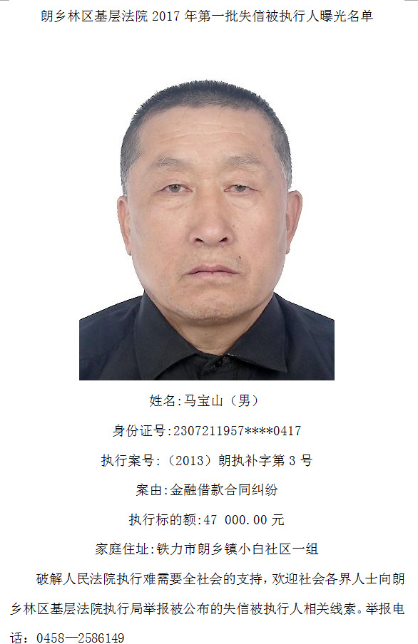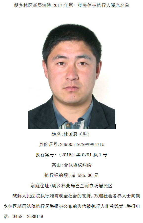 朗乡林区基层法院2017年第一批失信被执行人曝光名单
