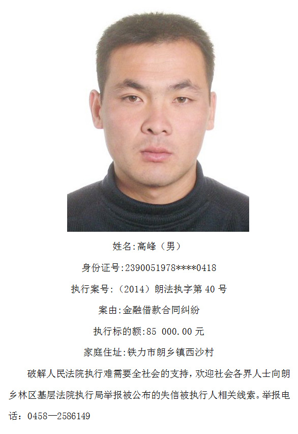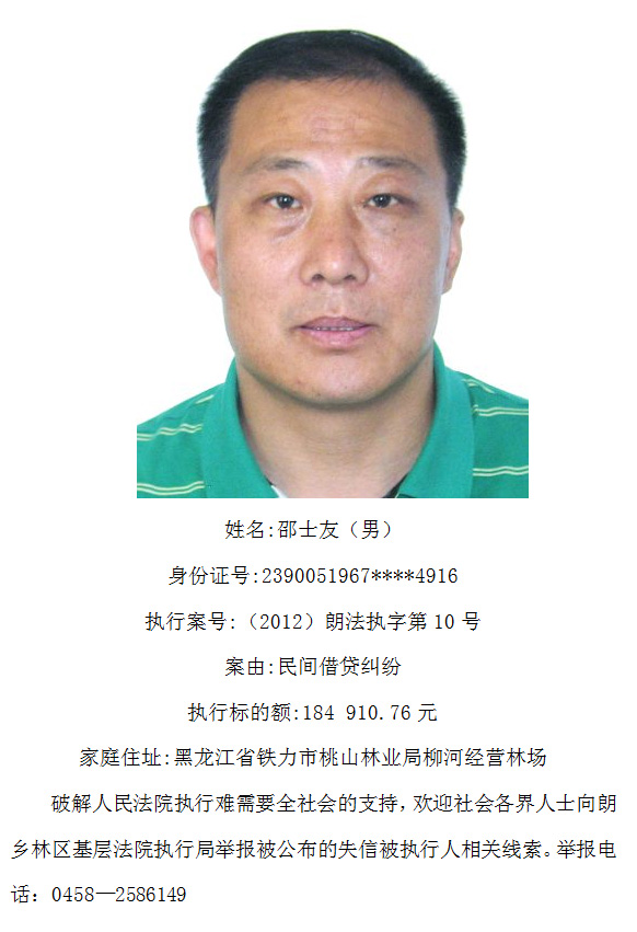 破解人民法院执行难需要全社会的支持,欢迎社会各界人士向朗乡林区基层法院执行局